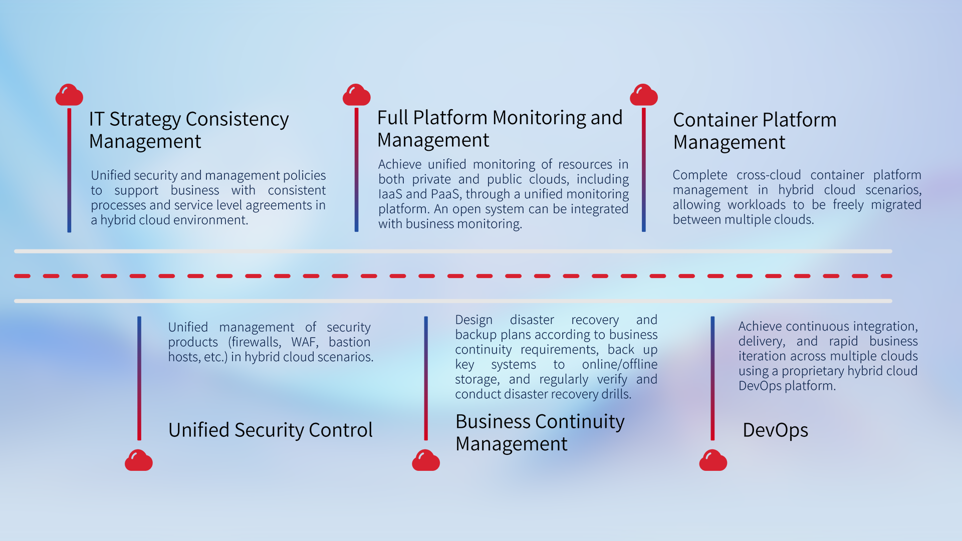 With years of experience with multiple cloud providers, we offer one-stop services for hybrid cloud architecture design, construction, migration, and deployment.